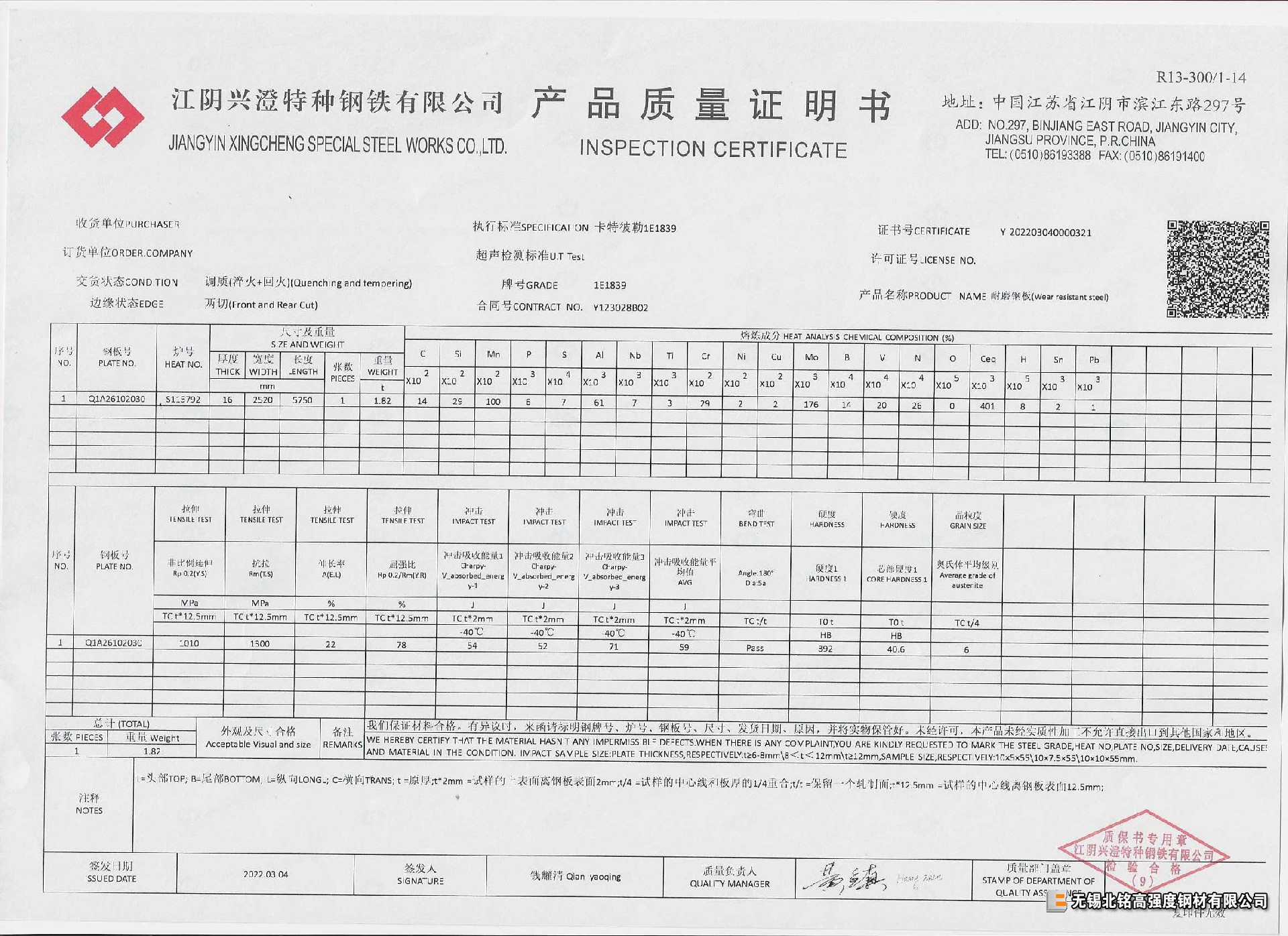 卡特彼勒企標1E1839 耐磨板-40℃低溫沖擊,保折彎,保探傷,少量現貨!