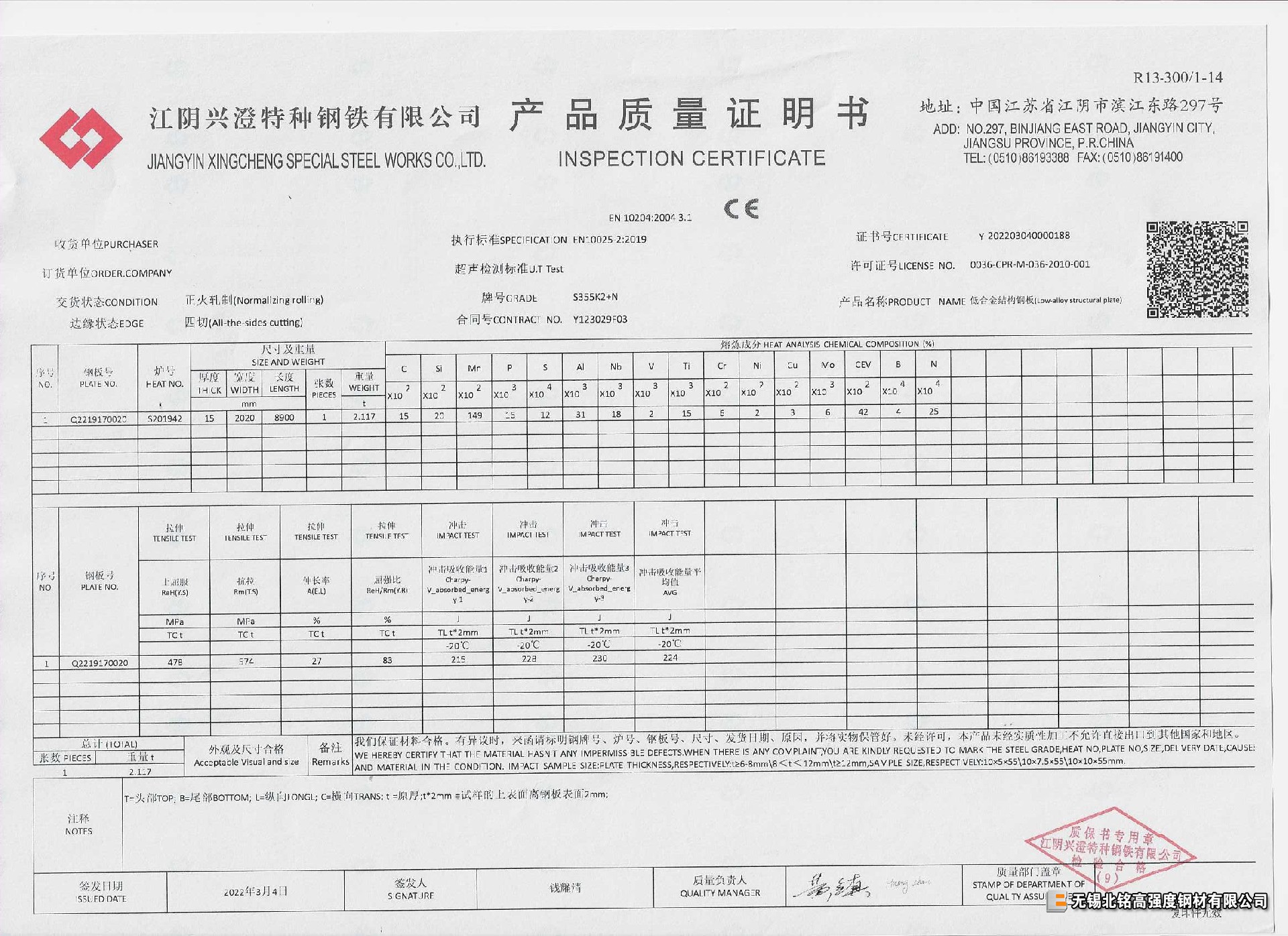 歐標(biāo)歐標(biāo)S355K2+N 執(zhí)行標(biāo)準(zhǔn)EN10025-2:2019 EN10204:2004 3.1 CE認(rèn)證